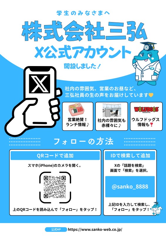 当社では、学生の皆さまにより身近に会社のことを知っていただけるよう、「X」にて